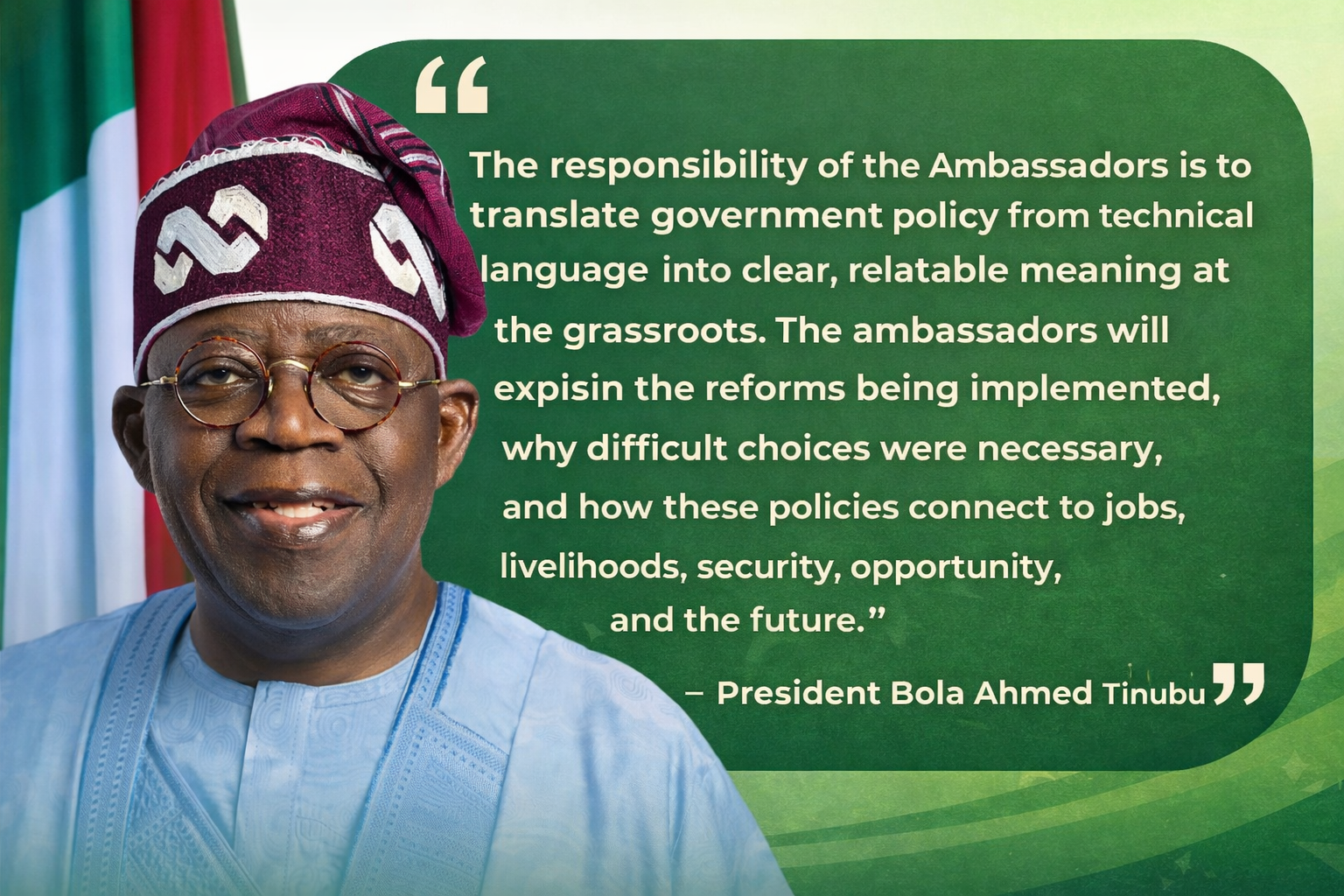Renewed Hope Ambassadors (RHA) is a nationwide civic engagement movement dedicated to connecting government reforms with citizen understanding across Nigeria. Through a structured network of ambassadors operating at national, state, local government, and ward levels, the initiative advances its mission through five strategic pillars: Civic Education, Grassroots Engagement, Policy Awareness, Citizen Feedback, and Party Outreach.